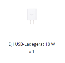 Im Lieferumfang der Standardversion der DJI Mavic Mini findet sich kein entsprechendes USB Ladegerät. Das offizielle DJI USB-Ladegerät mit 18 W ist ausschließlich in der Fly More Combo Version enthalten. Nachtrag: mittlerweile gibt es das offizielle Netzteil auch separat im DJI Store.